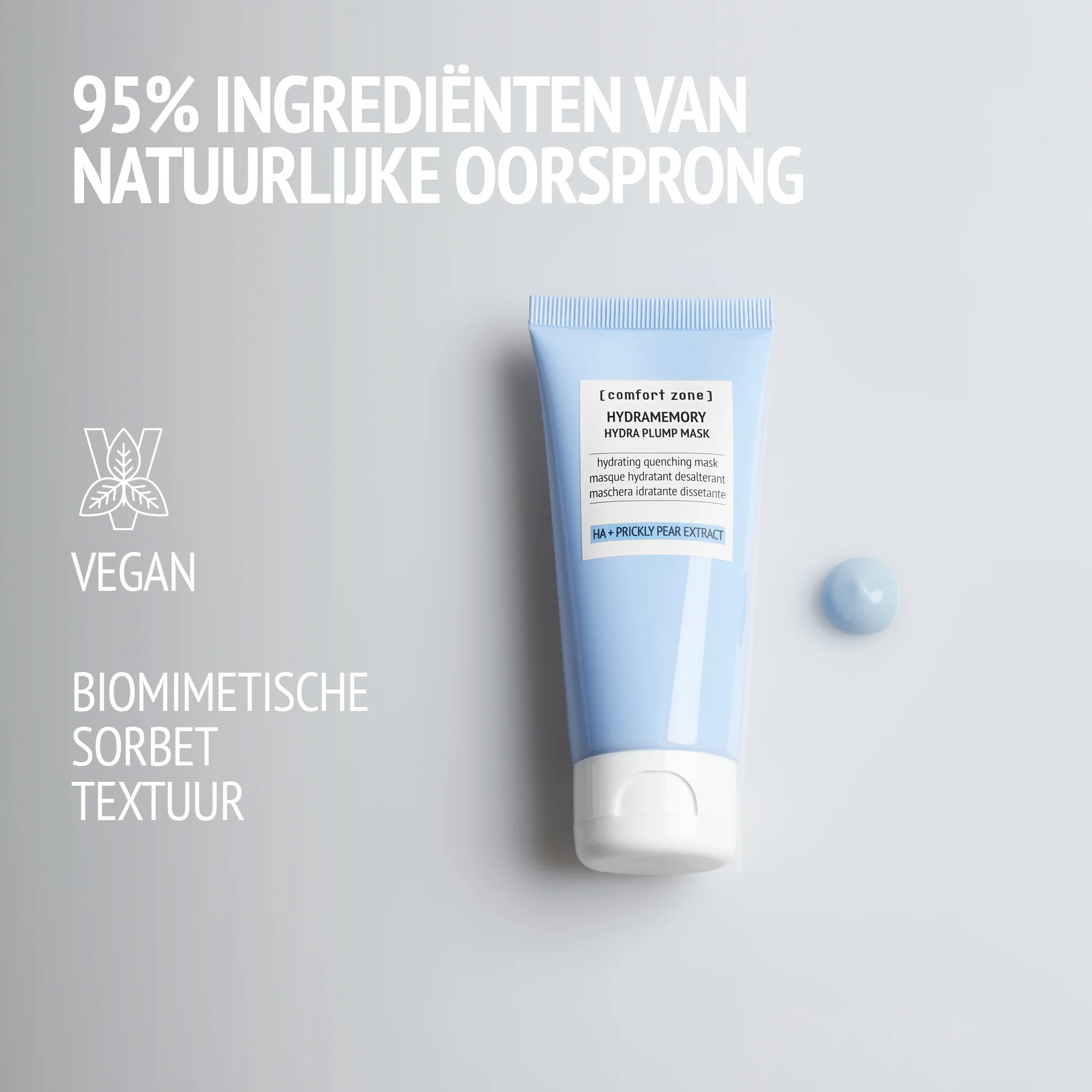 Het nieuwe Hydra Plump Mask is een flitsende intensieve oplossing voor de vochtarme, vermoeide en doffe huid! In slechts 15 minuten geeft deze glanzende formule, verrijkt met cactusvijgenextract uit de regeneratieve biologische landbouw en Macro Hyaluronzuur* de huid volume, zachtheid en glans. Deze veganistische biomimetische textuur verkwikt en hydrateert de huid. De perfecte bondgenoot wanneer je huid een onmiddellijke hydratatieboost nodig heeft.
