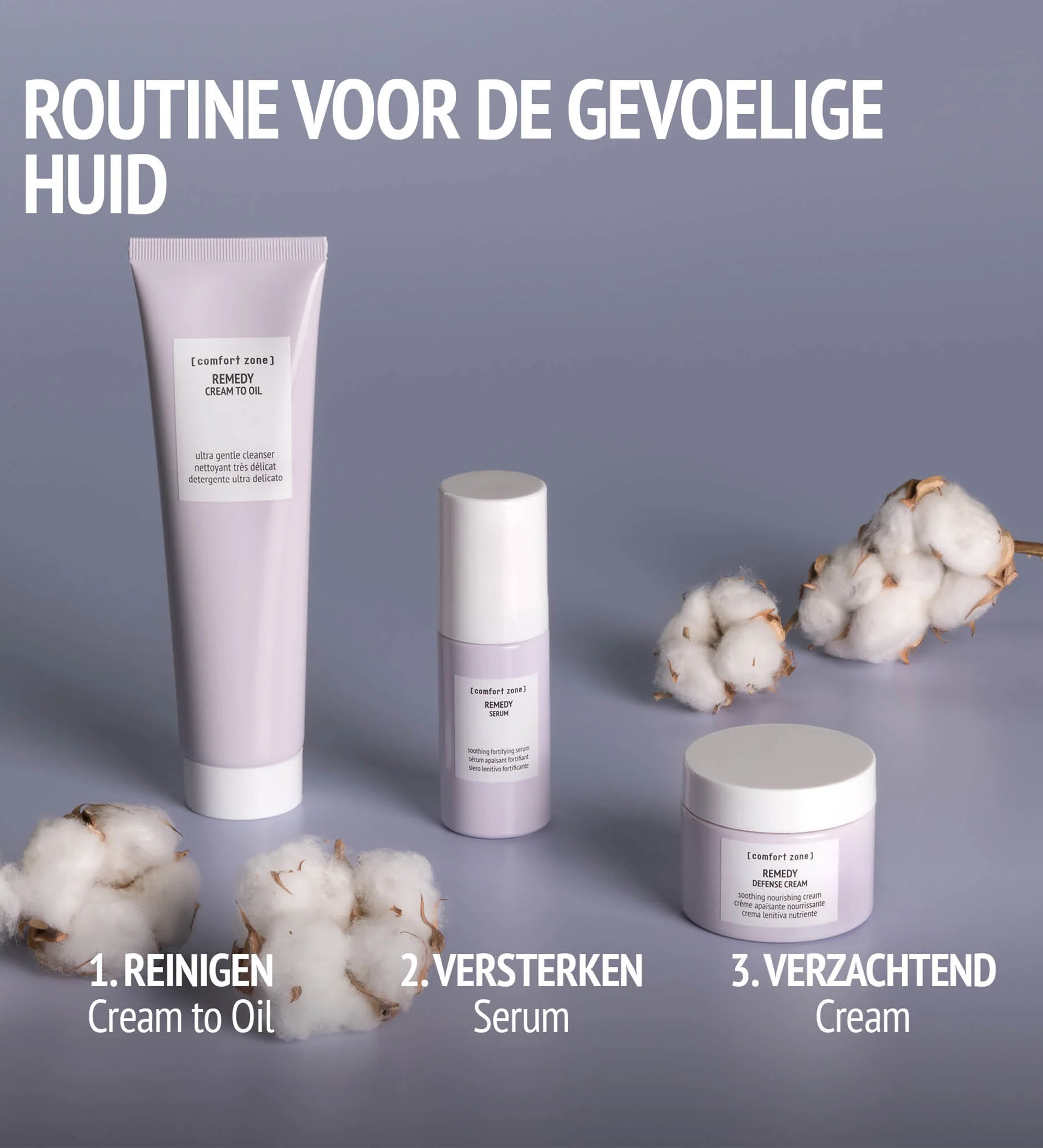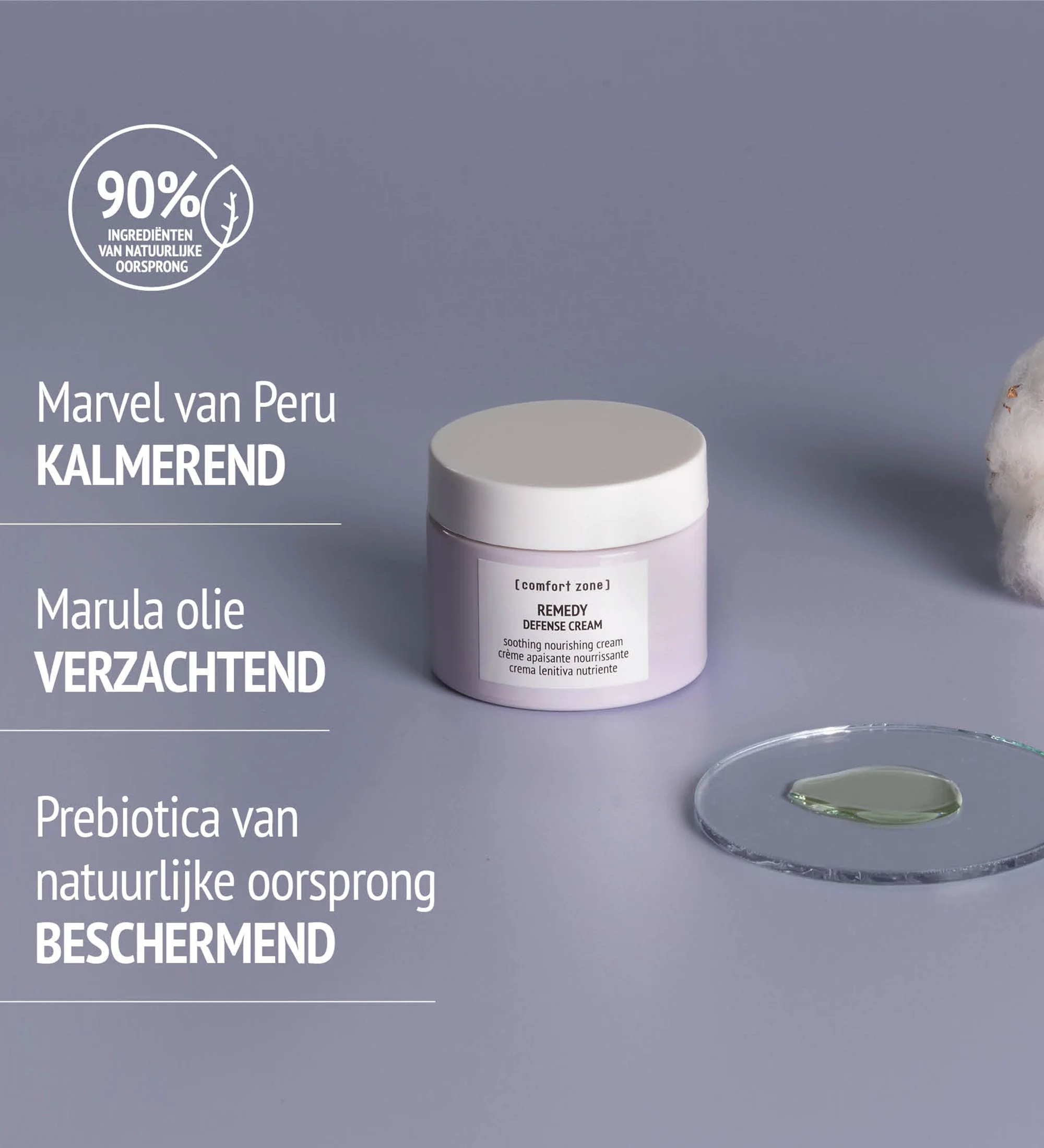 Als je op zoek bent naar een rijke crème die de barrièrefunctie van de huid voedt en ondersteunt, dan is Remedy Defense Cream het ideale product voor jou. Verrijkt met Marula Olie heeft het een voedende en verzachtende werking en is bijzonder geschikt voor de zeer droge, gedehydrateerde gevoelige huid en ruwe klimaten.